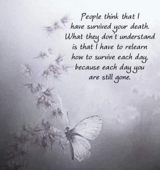But everyone says “So, how are you doing?” And that is ABSOLUTELY a normal thing to ask. There is NOTHING wrong with that! But I don’t know how to answer it. Do I say “I’m okay.” Because I’m not okay. I don’t feel “okay” at all. I feel like my world was ripped apart and no one has the glue to repair it…but I can’t tell people that.